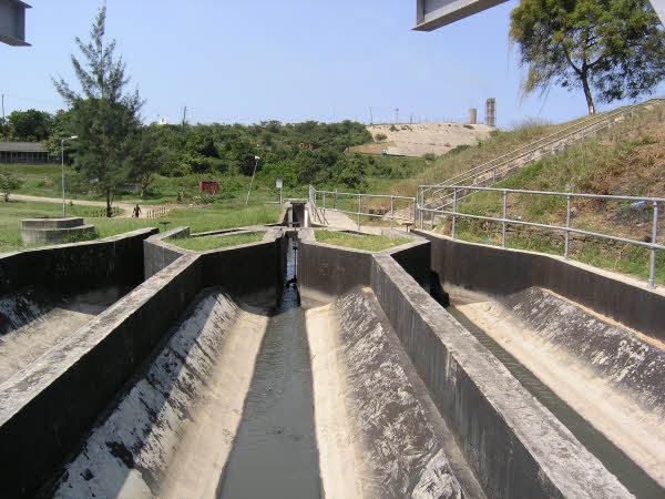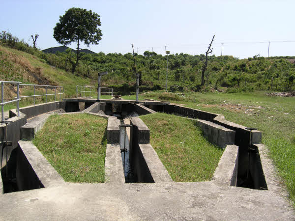 The inlet works with sand traps. A simple, but obvious a simple design. Load about 6000 m3/day or 2400 kg BOD/day, only |